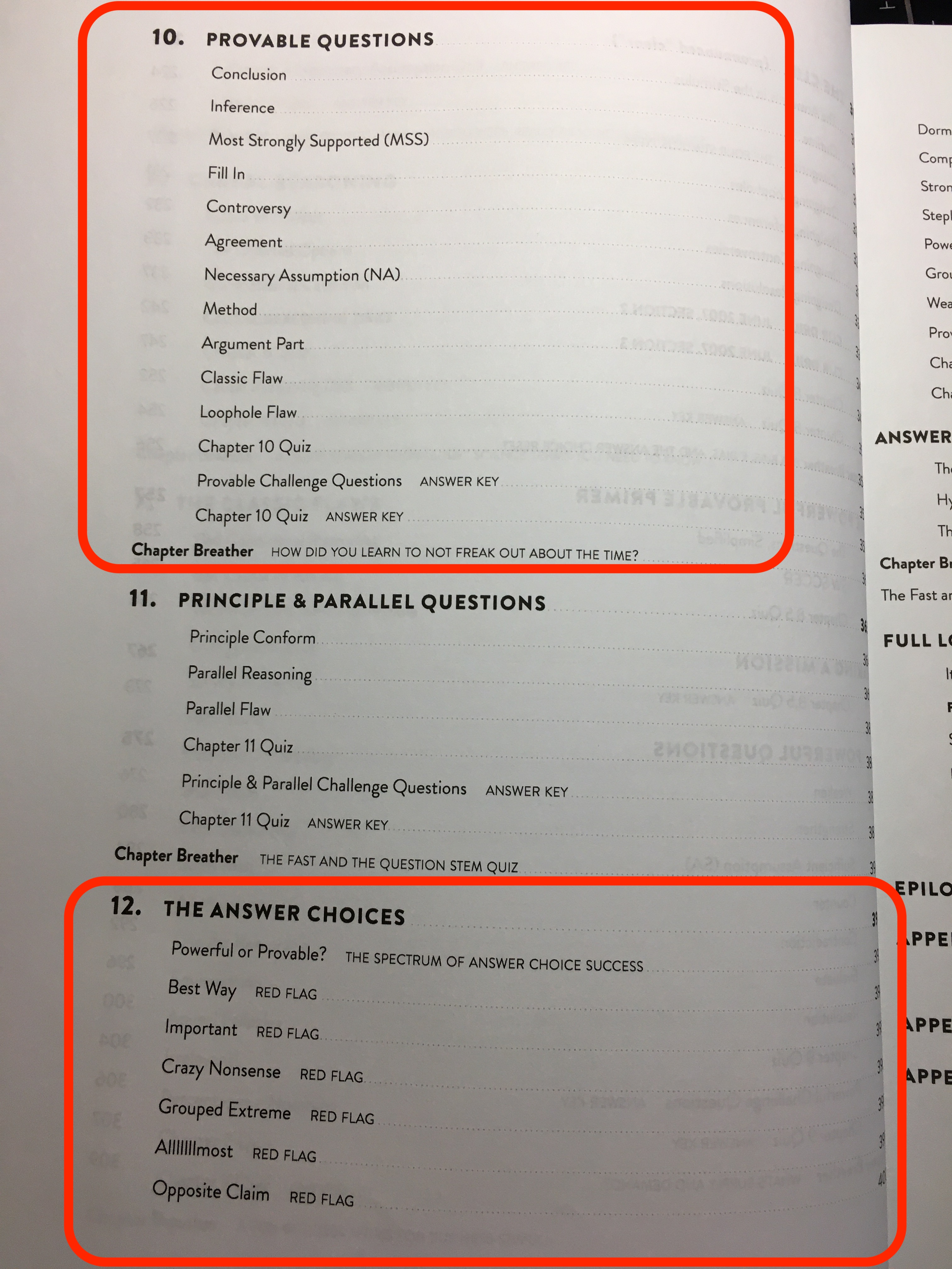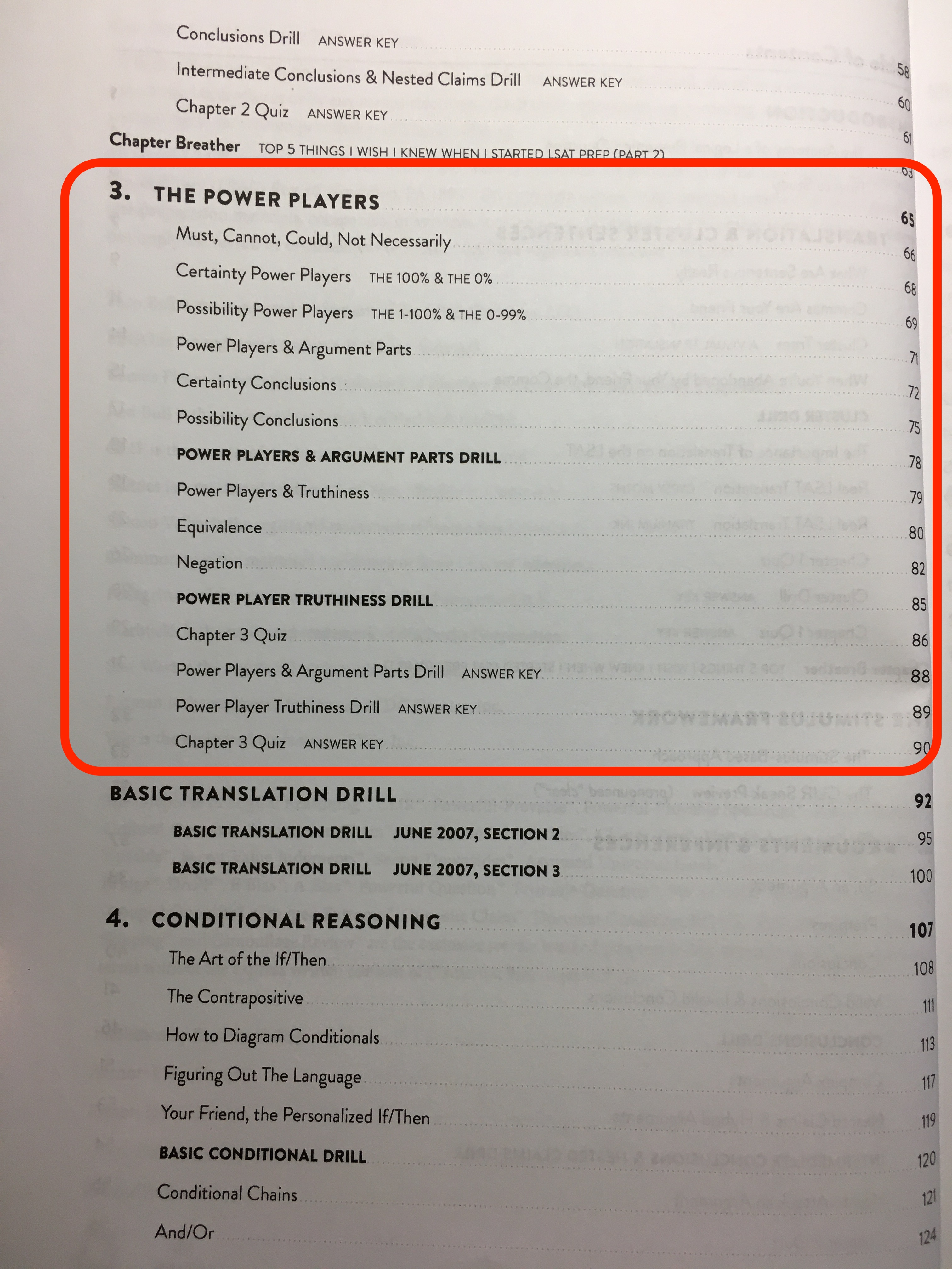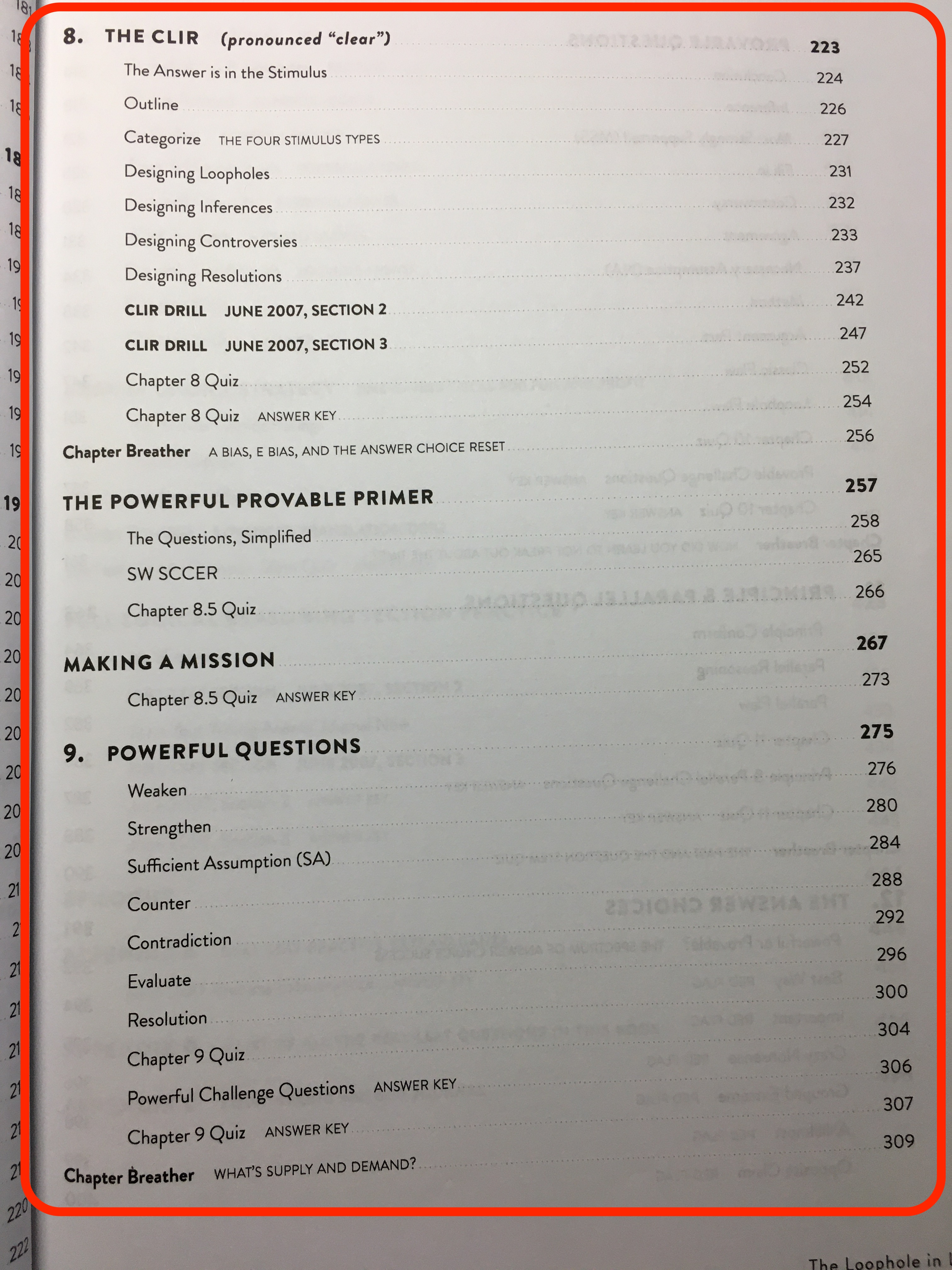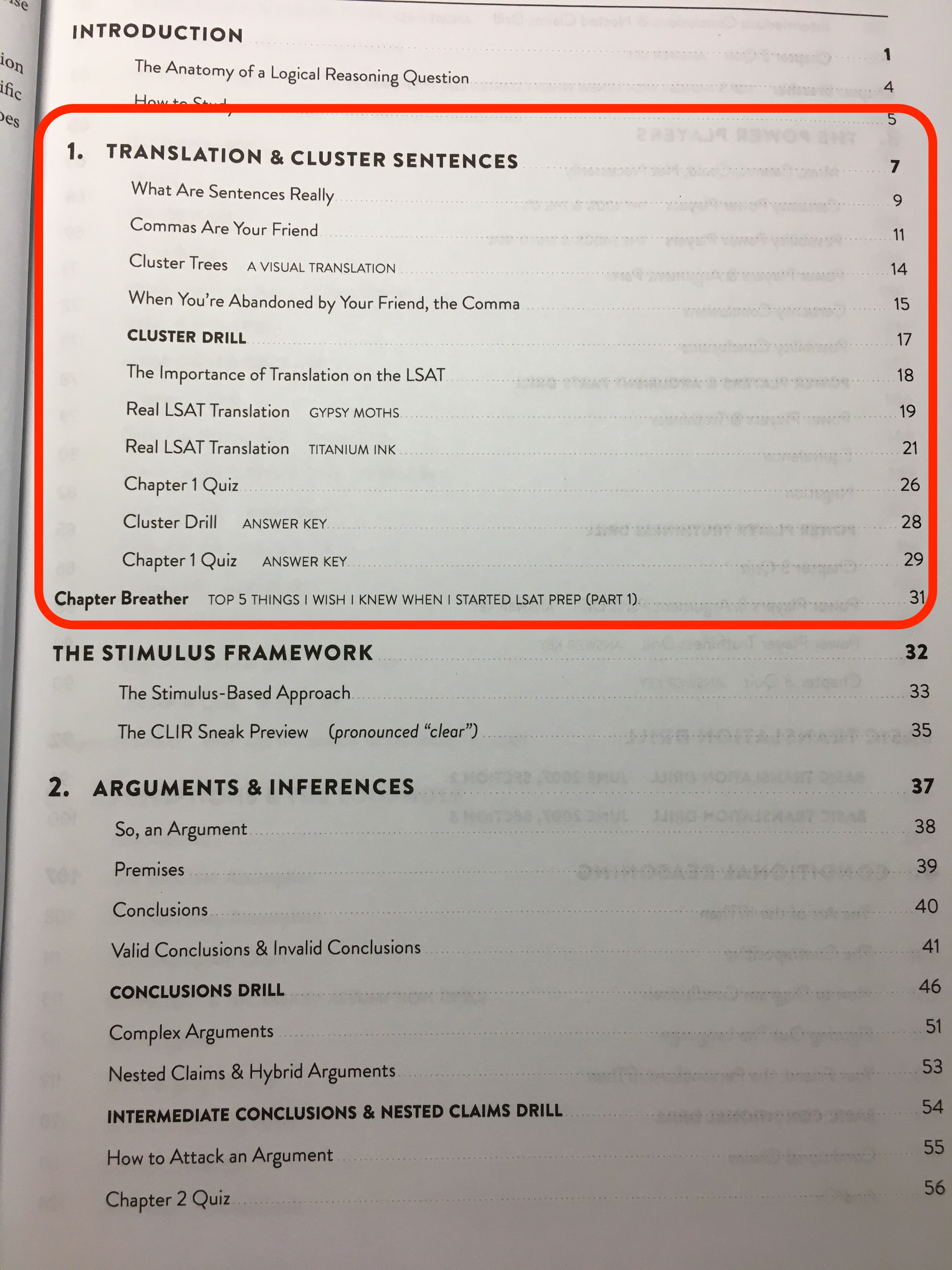 이 책으로 처음 LSAT을 접하시는 분들은 처음부터 다 읽으시면 되고, 다른 자료 (Powerscore Bible, Trainer, 7Sage, LSAT Lab)등으로 기초를 쌓으신 분들은 아래 빨간색으로 표시 한 부분을 읽으시면 됩니다.